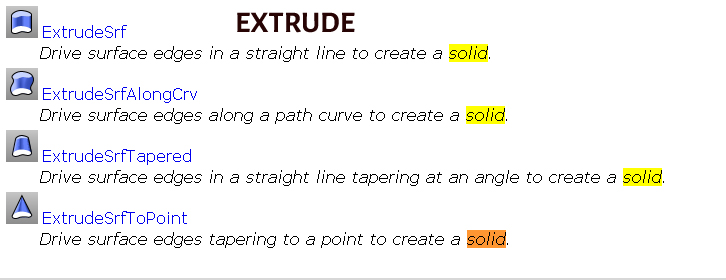 ^ List all Rhino solid that can be created Ellipse , Phere , Torus , Box , Cone , Cylinder , Paraboloid , Pyramid , Truncated Pyramid , Tube , Boss , Extrude , Pipe , Rib , Slab ,