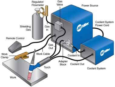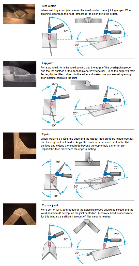 Gas tungsten arc, gas metal arc, shielded metal arc