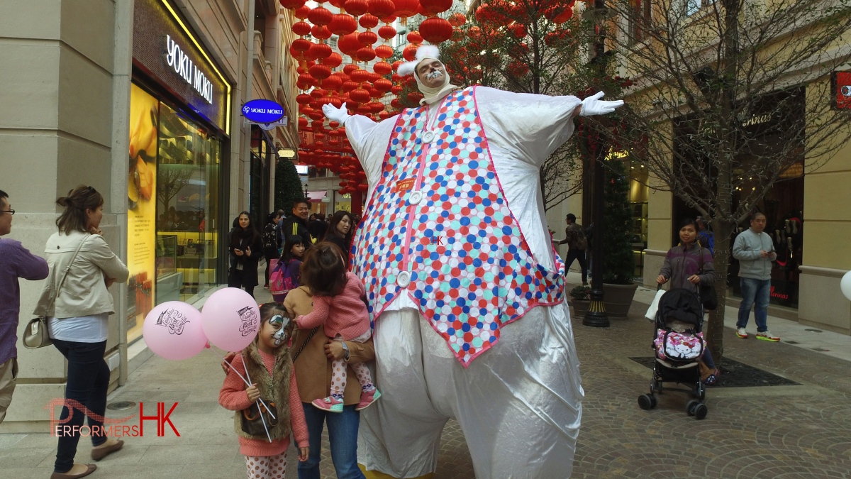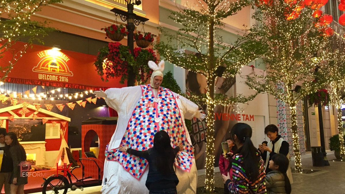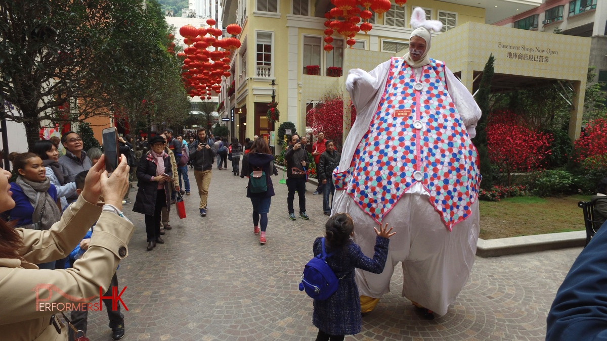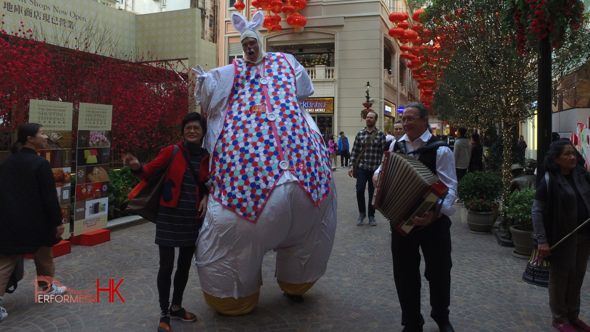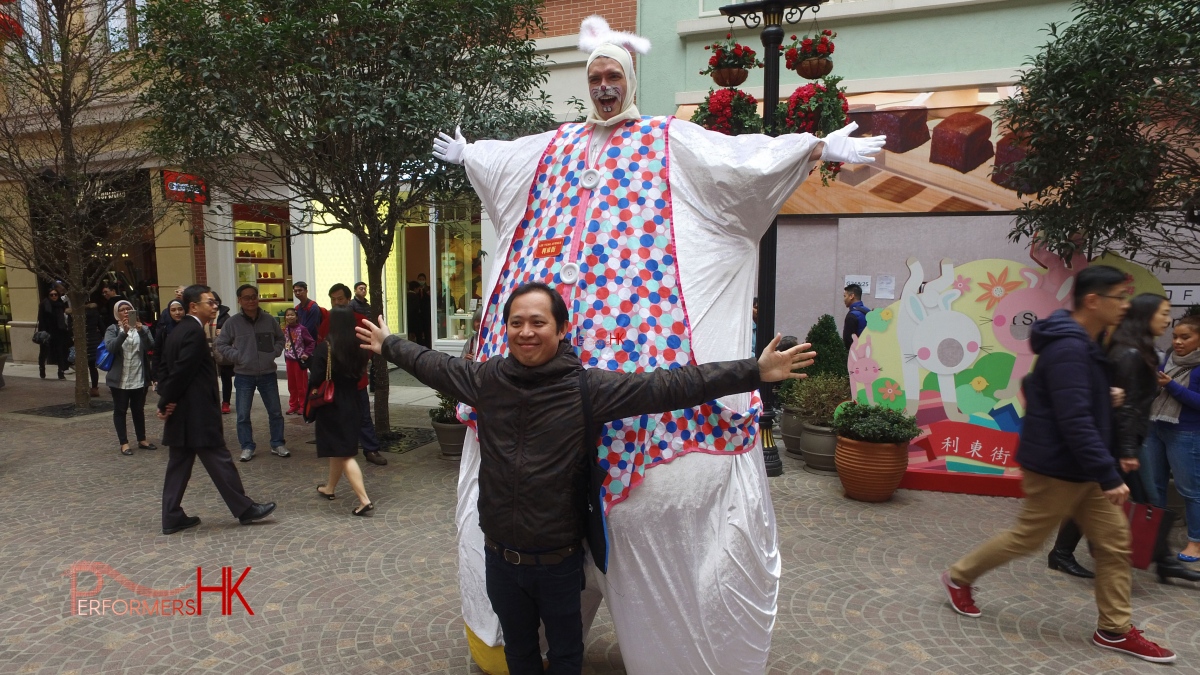 Easter bunny costume for hire from Performers HK, including mascoteer performer